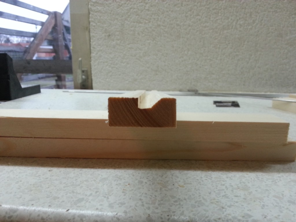Ist recht einfach und besteht aus zwei Fichte-Leimholz-Platten. Die habe ich frei nach Geschmack zugesägt, verrundet und zusammen verleimt.